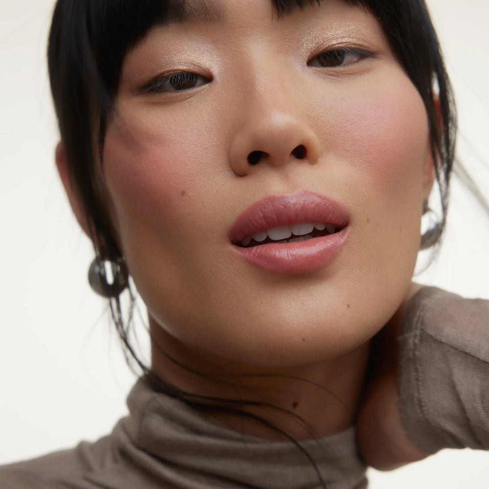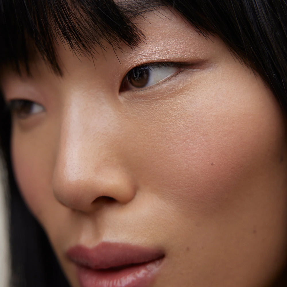 Use any remaining blush pigment on your brush to gently sweep across the bridge of your nose for a subtle, sun-kissed glow!