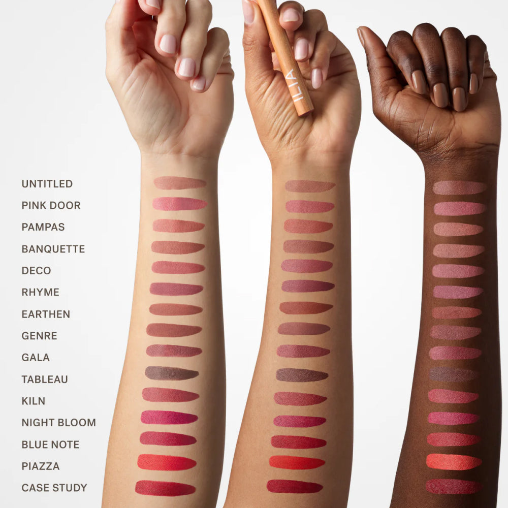 tridecyl trimellitate / octyldodecanol / dicalcium phosphate / synthetic wax / caprylic/capric triglyceride / diisostearyl malate / synthetic beeswax / helianthus annuus (sunflower) seed wax / rosa canina fruit oil / salicornia herbacea extract / undaria pinnatifida extract / sodium hyaluronate / rubus idaeus (raspberry) leaf extract / ricinus communis (castor) seed oil / disteardimonium hectorite / propylene carbonate / pentaerythrityl tetra-di-t-butyl hydroxyhydrocinnamate / hydrogenated castor oil / barium sulfate. may contain/peut contenir (+/-): ci 77891 (titanium dioxide) / ci 15850 (red 7 lake) / mica / ci 15850 (red 6) / ci 19140 (yellow 5 lake) / ci 15850 (red 7) / ci 77491 / ci 77492 / ci 77499 (iron oxides) / ci 15850 (red 7) / ci 45410 (red 28 lake) / ci 42090 (blue 1 lake) / ci 45380 (red 22 lake) / ci 15985 (yellow 6 lake).• start met het volgen van je eigen lipcontour en creëer de vorm die jij wil
